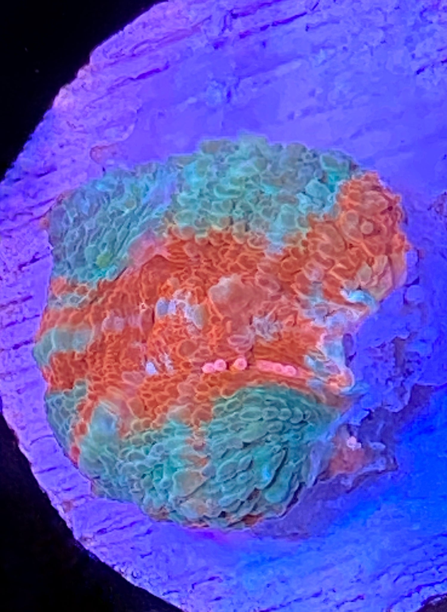 One of the nicest bowers in the hobby. This frag has a very nice spread of colors. Second pic is Mother